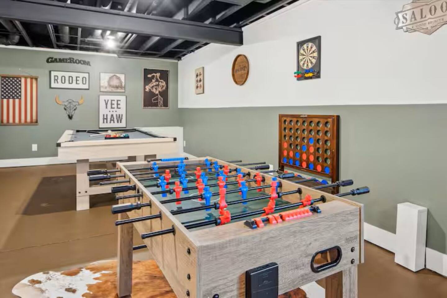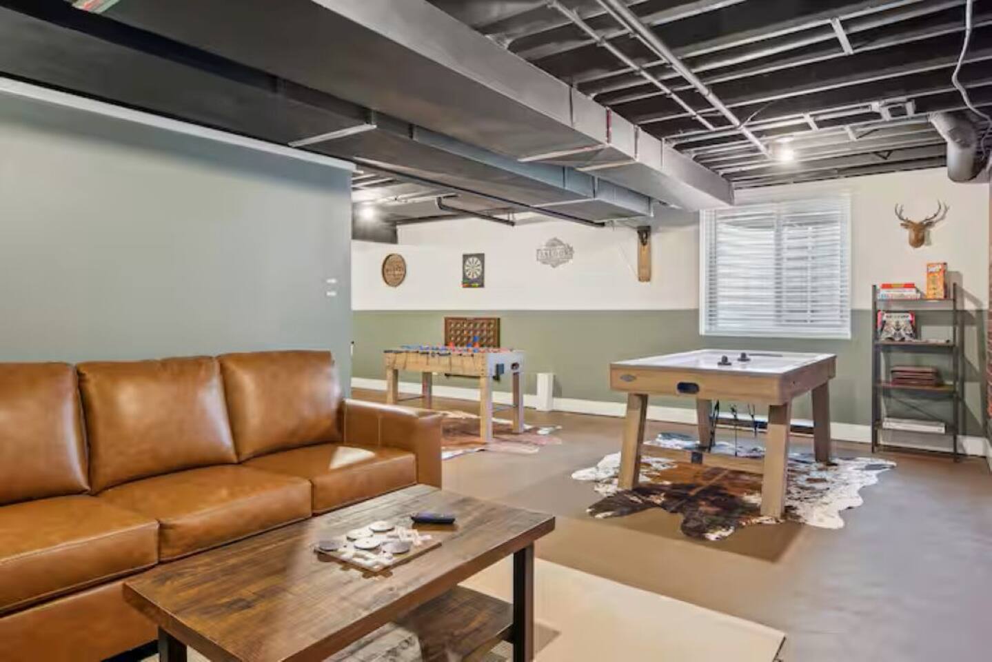 The game room located in the basement features a Smart TV, pool table, air hockey, foosball table, magnetic darts, the ring game, giant connect 4 & board games! Other amenities: → Parking → driveway (4 cars) → Office w/ sofa bed → Indoor gas fireplace → Onsite washer + dryer → AC + Heating → Coffee maker Family friendly space with high chair, pack n’ play & children’s dinnerware Sleeping arrangements: ★ 1 King bed ★ 2 Queen beds ★ 2 Twin beds ★ 1 Queen sized sofa bed in private office Be sure to ❤ my listing to find it easily next time!