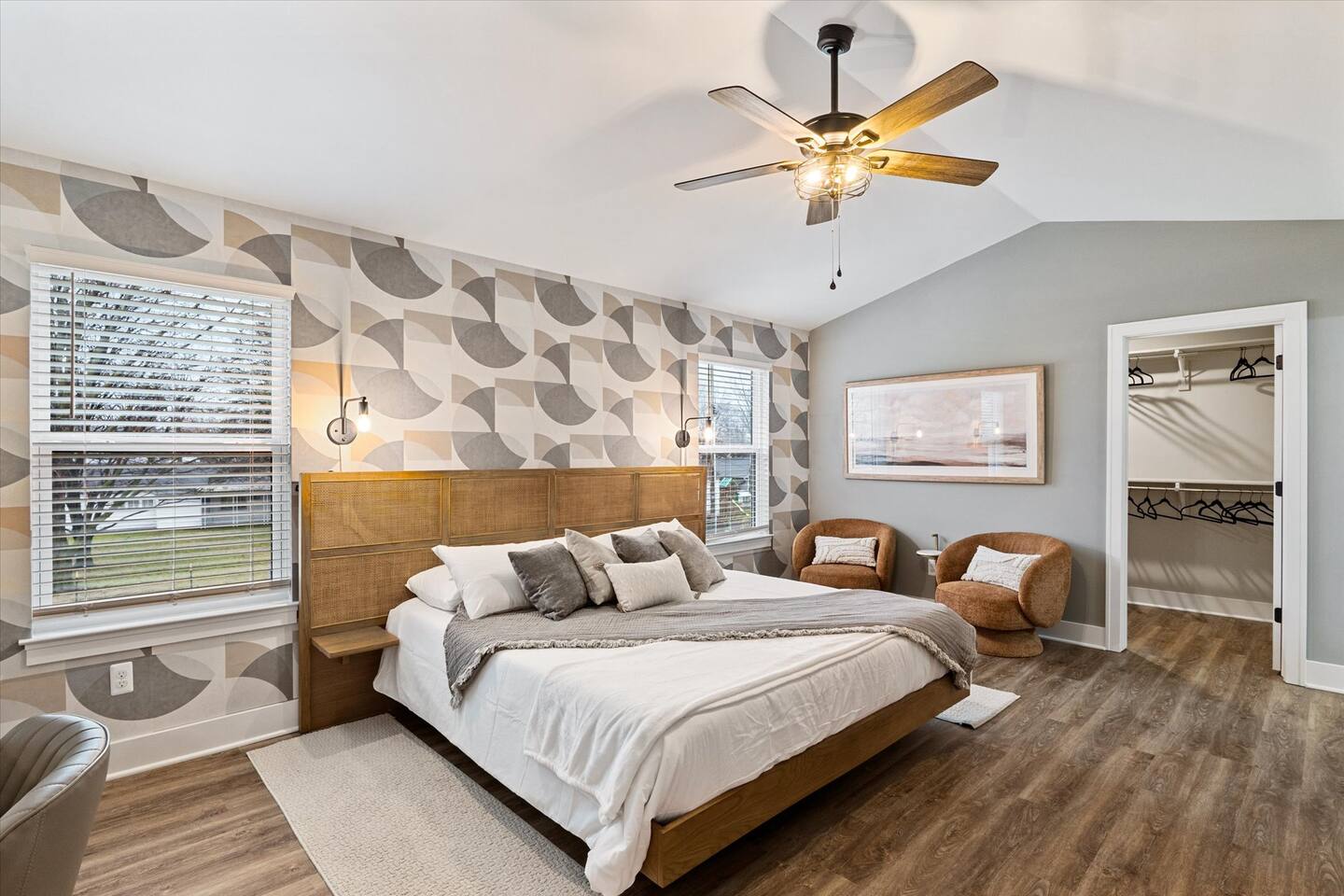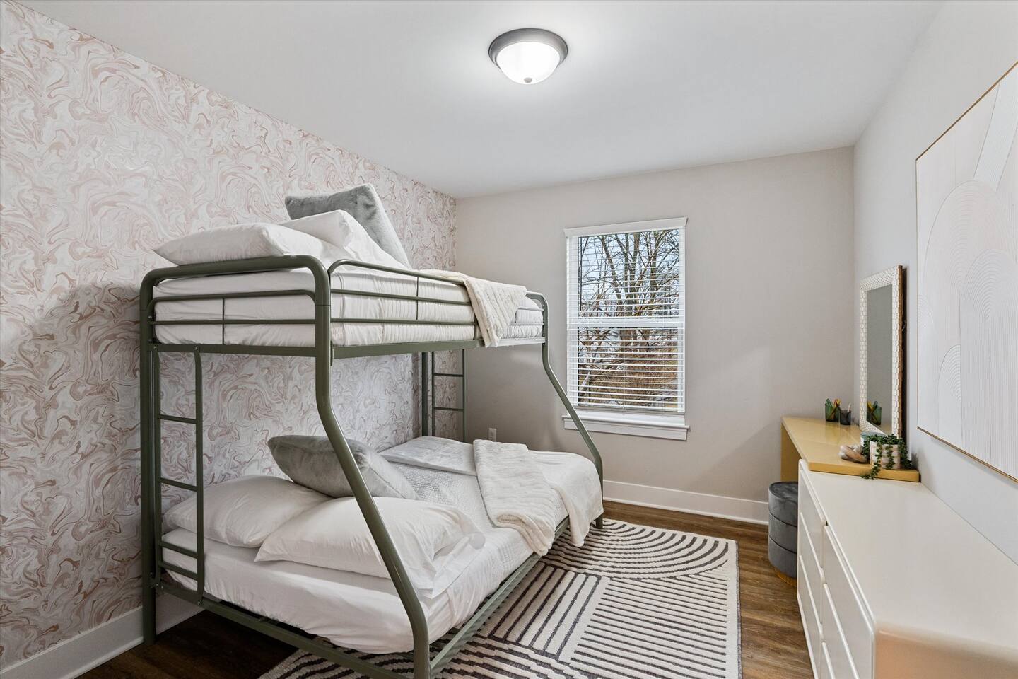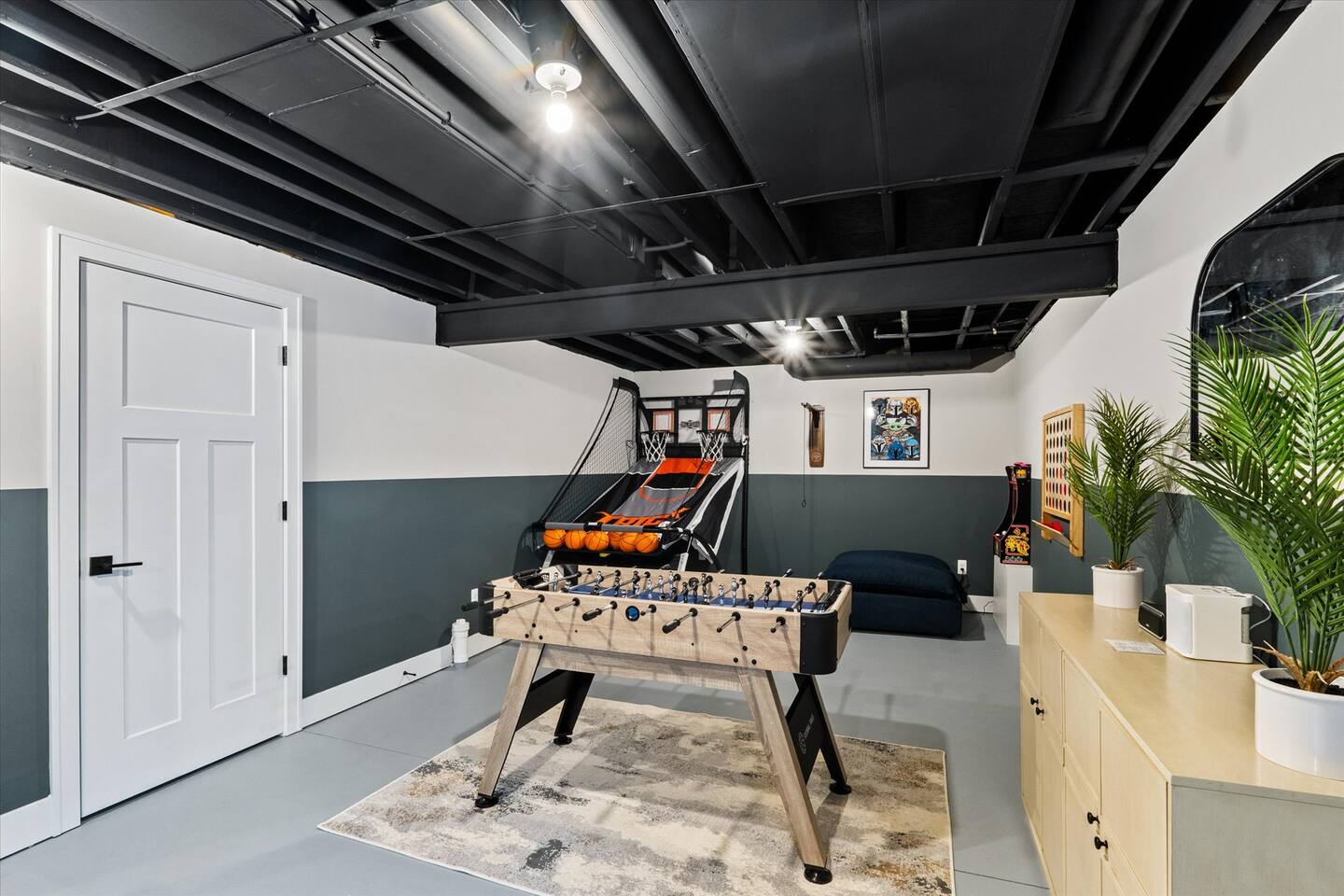 ☞ 4 Bedrooms & private office room w/ bed ~Primary bedroom has a king bed ~Bedroom two has a bunk bed (full on bottom twin on top) ~Bedroom three has a queen bed ~Bedroom four has a king bed ~Private office room with queen Murphy bed ~Full sized Futon in Basement