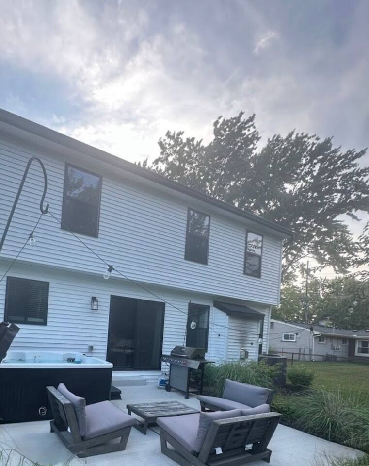 NEW 2200ft² house with open backyard, hot tub, fire pit & game room! ☞ Walk Score 80 (Walk to cafes, dining, shopping etc.) ☞ Patio w/ hot tub + fire pit + BBQ ☞ Game room w/ TV + pool table + foosball + Arcade Basketball ☞ Fully equipped kitchen ☞ Master suite w/ king + TV + bathroom ☞ Parking → garage (2 cars) + driveway ☞ 50” Smart TV ☞ 500 Mbps wifi 3 mins → DT Plymouth 19 mins → Detroit Metropolitan Wayne County Airport 22 mins → DT Ann Arbor 26 mins → DT Detroit